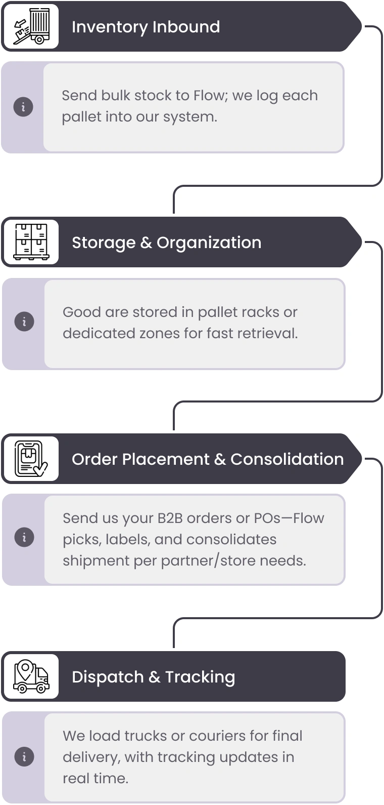 Cut overhead, ensure compliance, and deliver on time with Flow's wholesale fulfillment service.